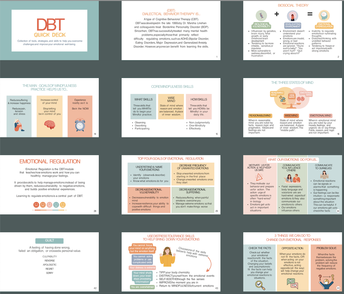 Collection of key DBT insights, lessons and strategies curated by Sheila to help people of every age improve their emotional well being.